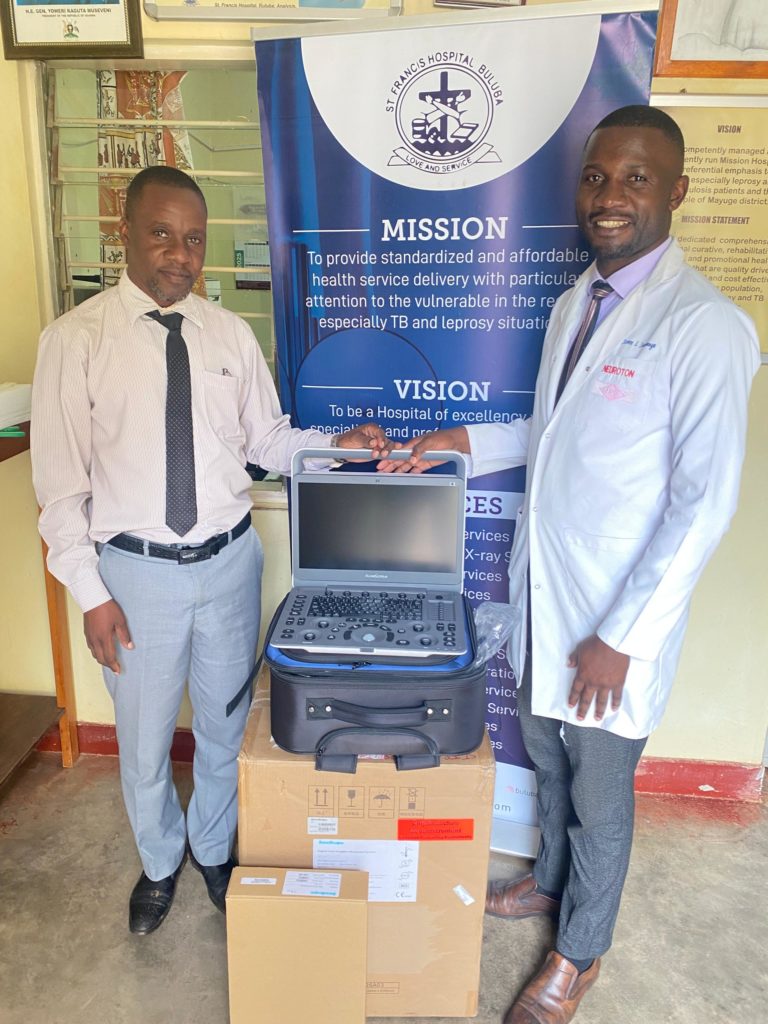 Bei unserem Besuch im Februar 2025 äußerten die Chefärzte vom Buluba Hospital zusammen mit Verwaltungsleiter George die Bitte nach einem mobilen Ultraschallgerät. Heiner Stepper vom Vorstand kümmerte sich darum. In Absprache mit Buluba entschieden wir uns für das SonoScape E1 mit diversem Zubehör (z.B. mehreren Schallsonden für unterschiedliche Einsatzgebiete) von der Firma Xcelsitas AG Berlin, die uns auch einen schönen Rabatt einräumten. Ein herzliches Dankeschön an Vorstand Dr. Ralf Berscheid.