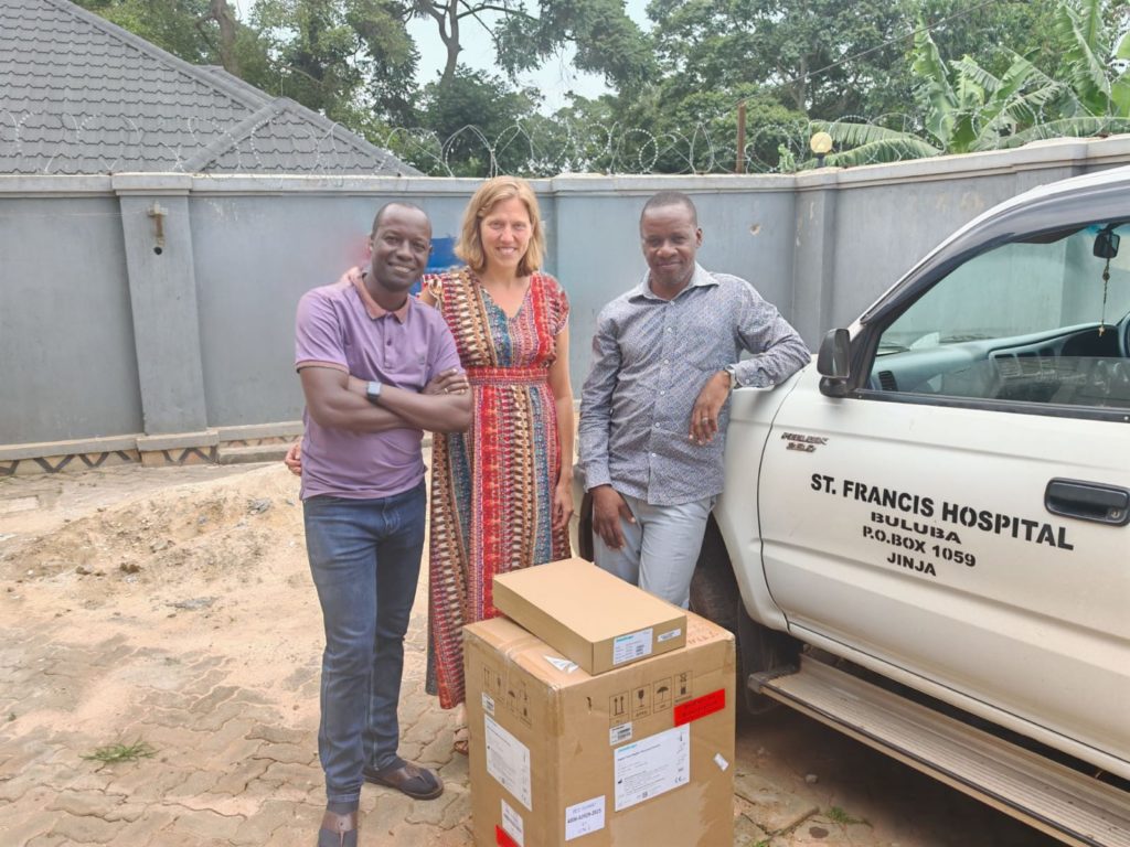 Unser Mitglied Eva Zander-Kasaija nahm das fast 20 kg wiegende Gepäckstück dankenswerter Weise Mitte August mit. Die Investition kostet uns 6.618 Euro. Zollgebühren fielen dank Eva´s Charme keine an! Mit ihrem Mann Denis brachte sie es zum Hospital.