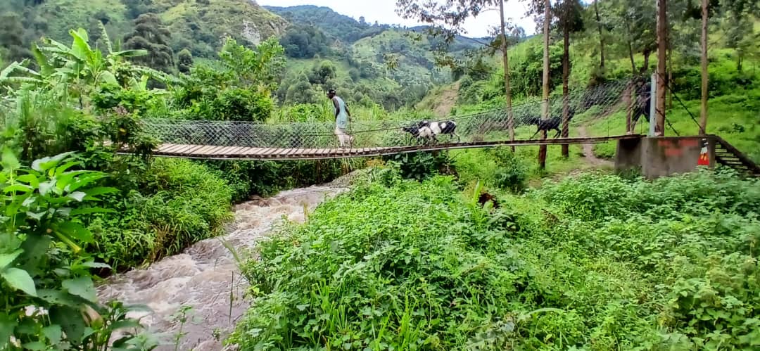 Die 2025 mit Mitteln der Stiftung Wernau gebaute Hans-Mendel-Brücke erfüllt ihren Zweck auch bei langsam wieder steigendem Hochwasser, wie man hier sehen kann. Menschen und Tiere kommen seitdem trockenen Fußes zur anderen Seite, kein totes Schulkind mehr. Noch einmal DANKE. Bei Höchststand ist der Fluss dann zwischen 15 und 20 m breit, die Brücke schwebt 50 cm darüber.
